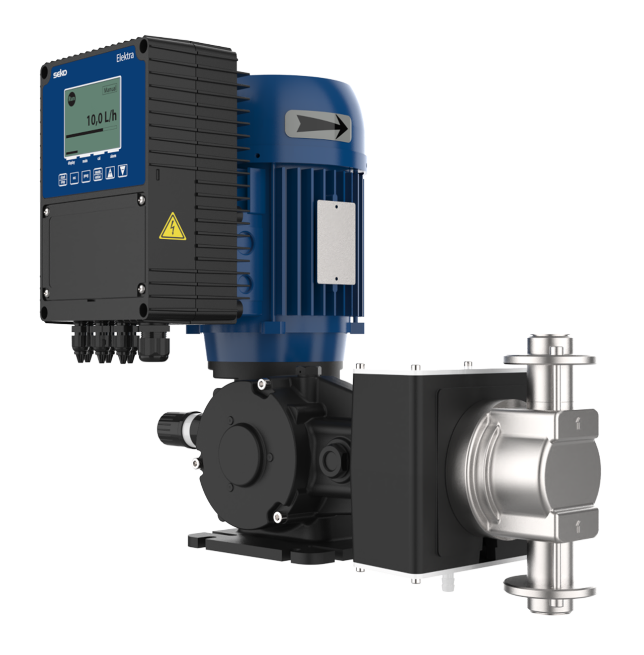 数显控制 电机加持 SEKO的数字泵Elektra系列产品可随时随地为用户提供宝贵的实时和历史数据,助力各行业精准掌控设备运行状况,提升管理效率。 因借助了RS485信号,用户能够远程监测和调整Elektra关键加药参数(如加药量和投药速率)。通过笔记本电脑、平板或智能手机等设备,用户能够轻松访问系统,实现精准的数字投加、优化工艺流程,并有效控制成本。 此外,Elektra提供多达48个报警事件列表,帮助操作人员及时识别维护需求,包括计划性预防维护、定期保养或紧急维修调度。用户能有效降低意外停机带来的高昂成本,确保设备运行的连续性和稳定性。