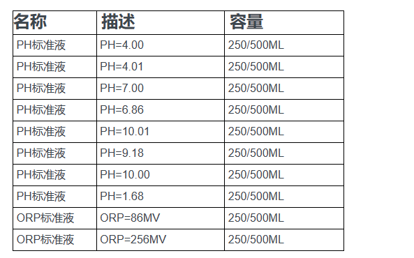 下表各PH值标准液均有售。
